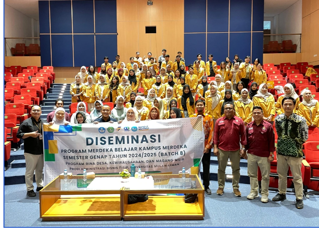 Program Studi Administrasi Bisnis Fakultas Ilmu Sosial dan Ilmu Politik Universitas Mulawarman melaksanakan kegiatan Diseminasi Merdeka Belajar Kampus Merdeka (MBKM) Batch 8 sebagai bagian dari komitmen dalam mendukung kebijakan transformasi pendidikan tinggi yang dicanangkan oleh Kementerian Pendidikan, Kebudayaan, Riset, dan Teknologi. Kegiatan ini bertujuan untuk menyampaikan hasil pembelajaran, pengalaman, serta luaran dari mahasiswa yang telah mengikuti berbagai bentuk kegiatan MBKM, seperti magang, proyek kemanusiaan, studi independen, asistensi mengajar, dan pertukaran mahasiswa.