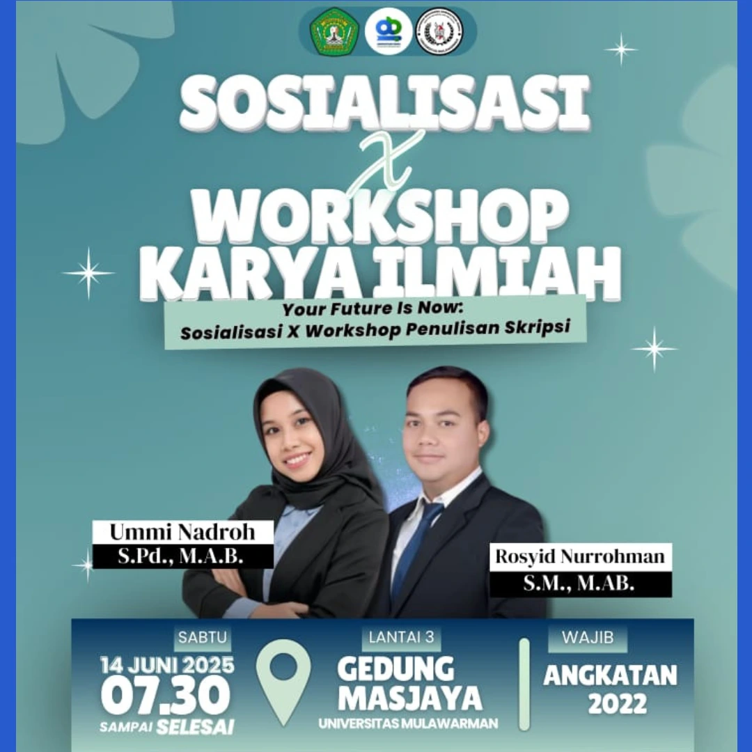 Dalam rangka penguatan pelaksanaan Tridharma Perguruan Tinggi, Program Studi Administrasi Bisnis, Fakultas Ilmu Sosial dan Ilmu Politik, Universitas Mulawarman menyelenggarakan kegiatan Sosialisasi Roadmap Penelitian dan Pengabdian kepada Masyarakat (PKM) serta Workshop Karya Ilmiah pada hari Sabtu, tanggal 14 Juni 2025, bertempat di Gedung Prof. Masjaya, Ruang Teater Lantai 3.